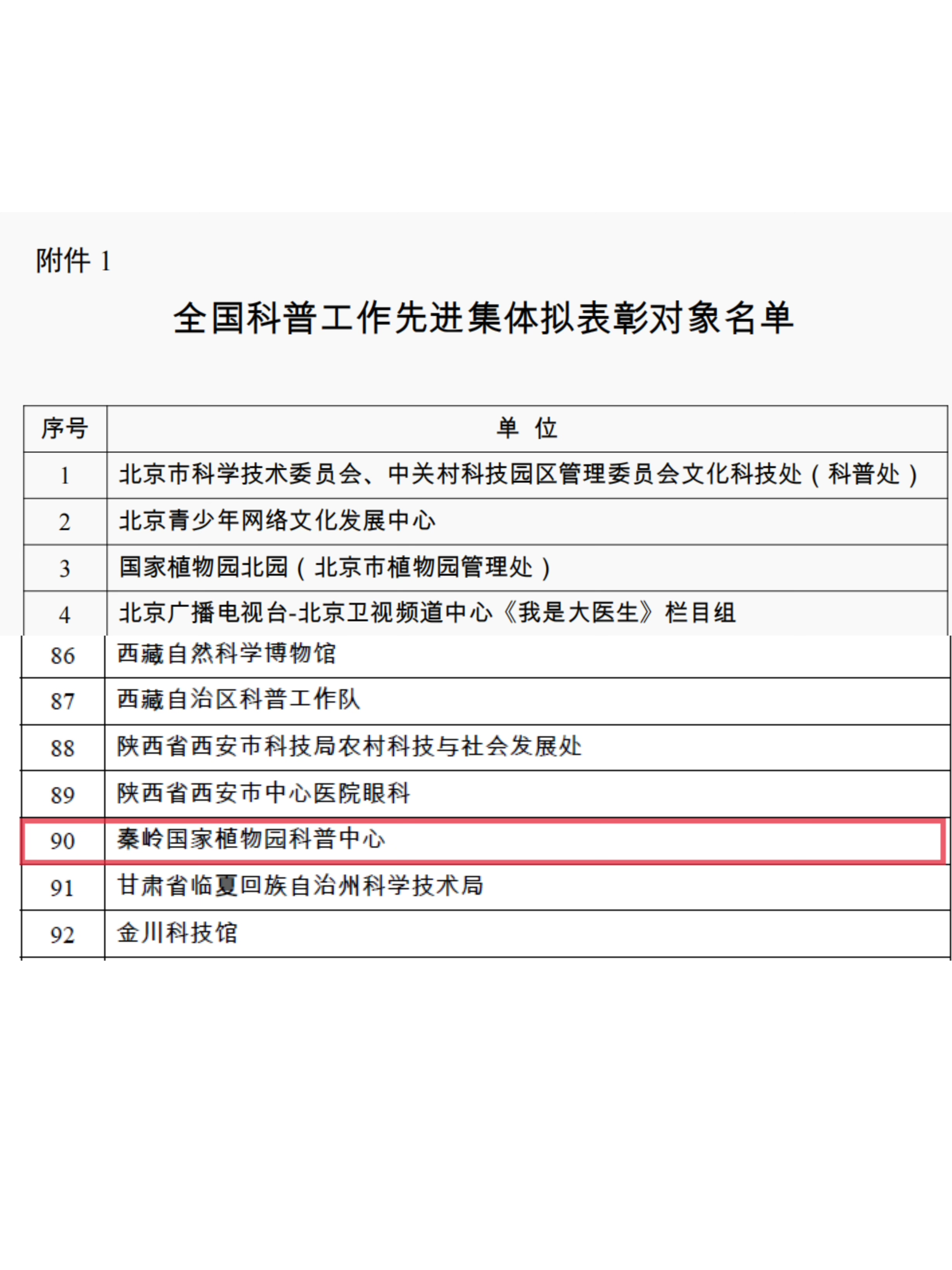 近日,根据全国科普工作先进集体和先进工作者评选表彰工作领导小组办公室发布的《科技部 中央宣传部 中国科协关于评选表彰全国科普工作先进集体和先进工作者的通知》(国科发才〔2023〕202号),经各地、各相关部门逐级推荐和评选,秦岭国家植物园科普中心入选“全国科普工作先进集体”荣誉称号。